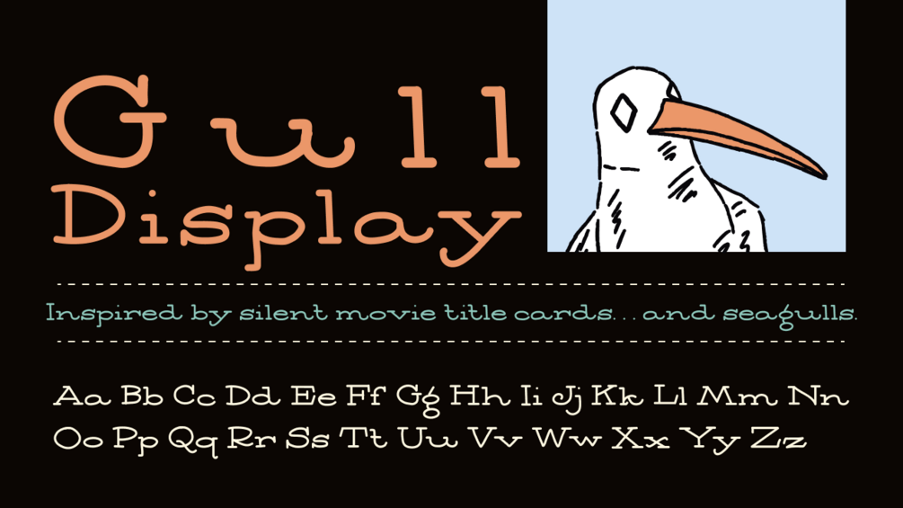 A hand-drawn typeface inspired by silent movie lettering...and seagulls.